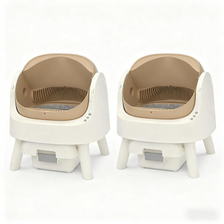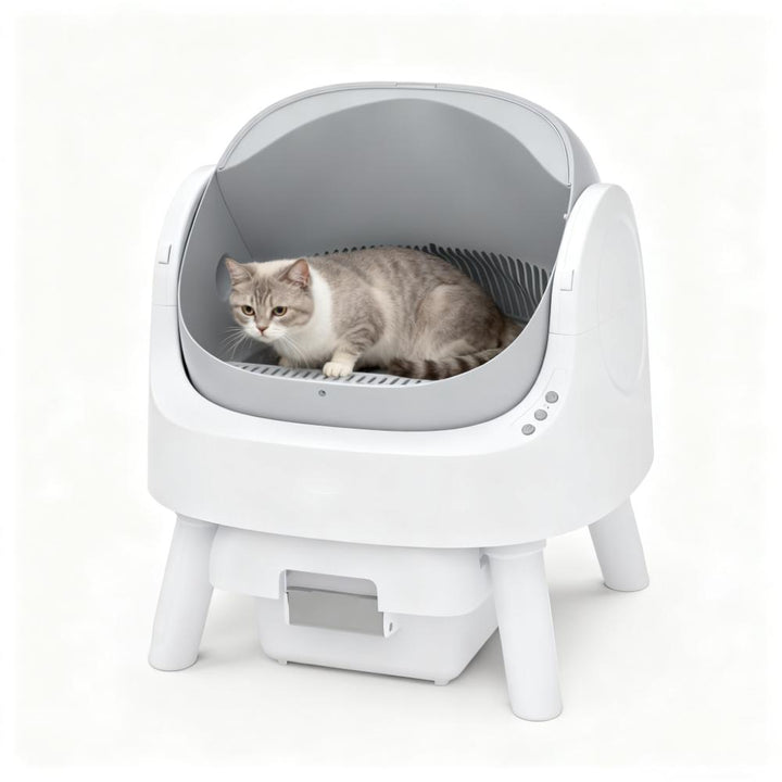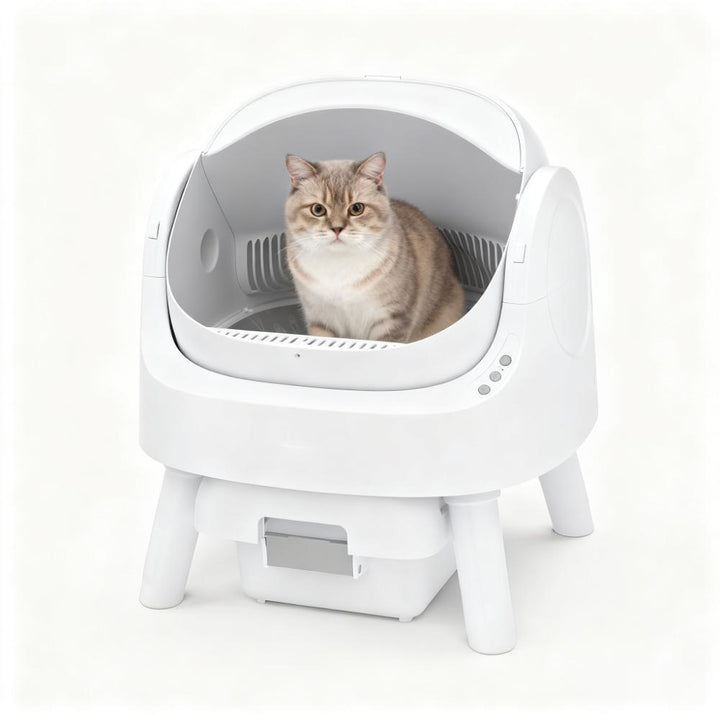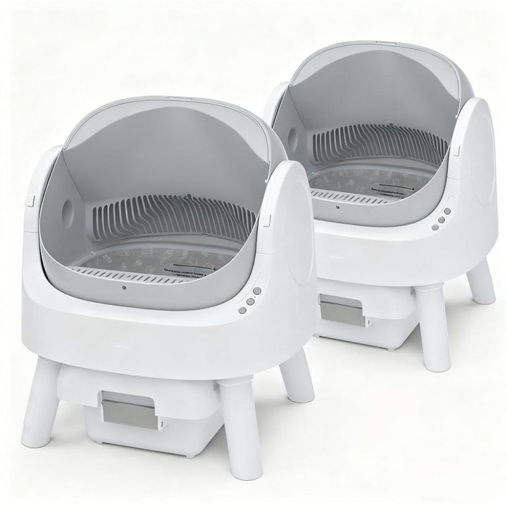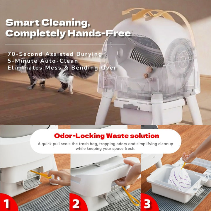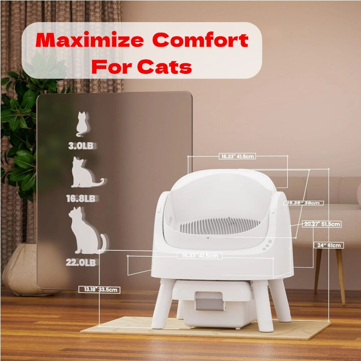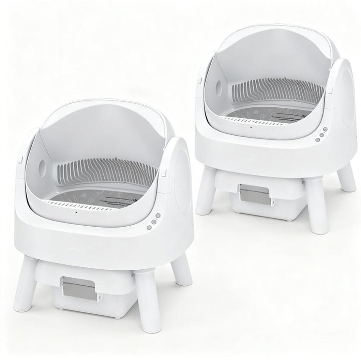 Auto-Cleaning Cat Litter Box for Multiple Cats | Open Top | White (Liners & Mat Included)