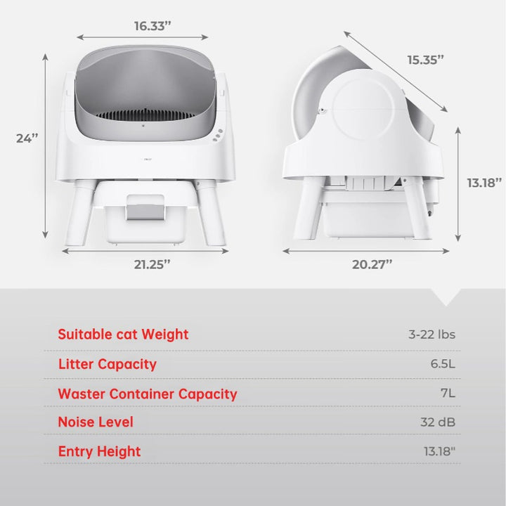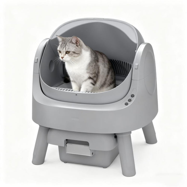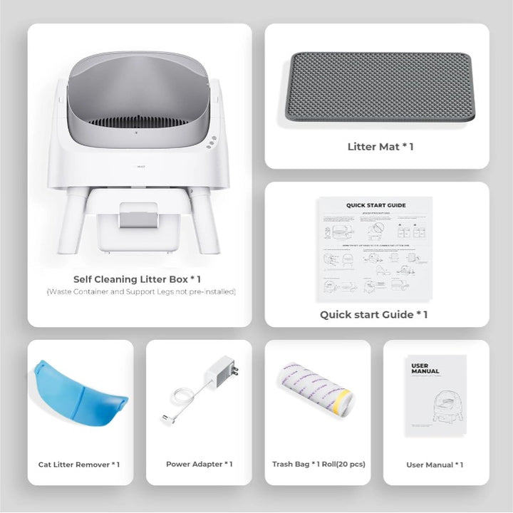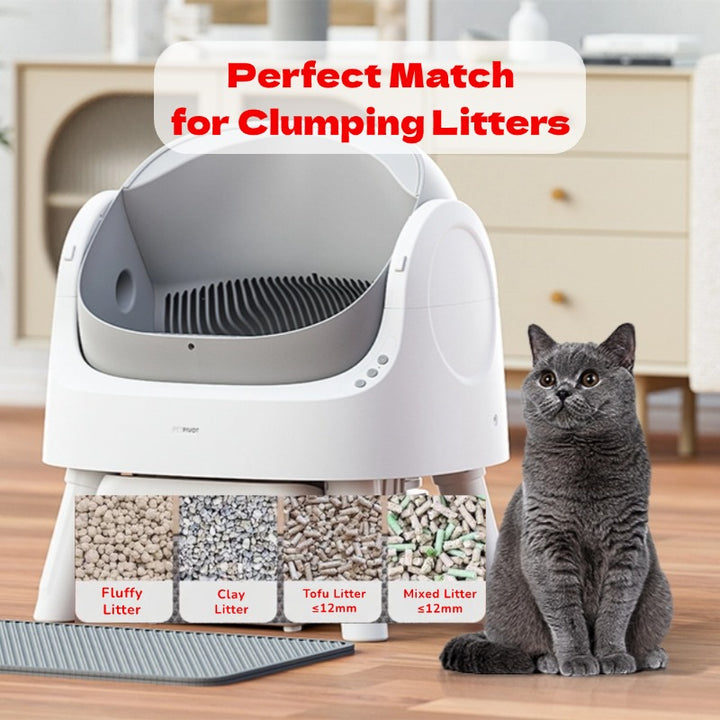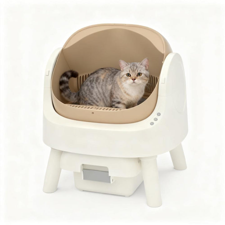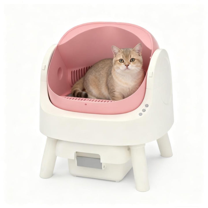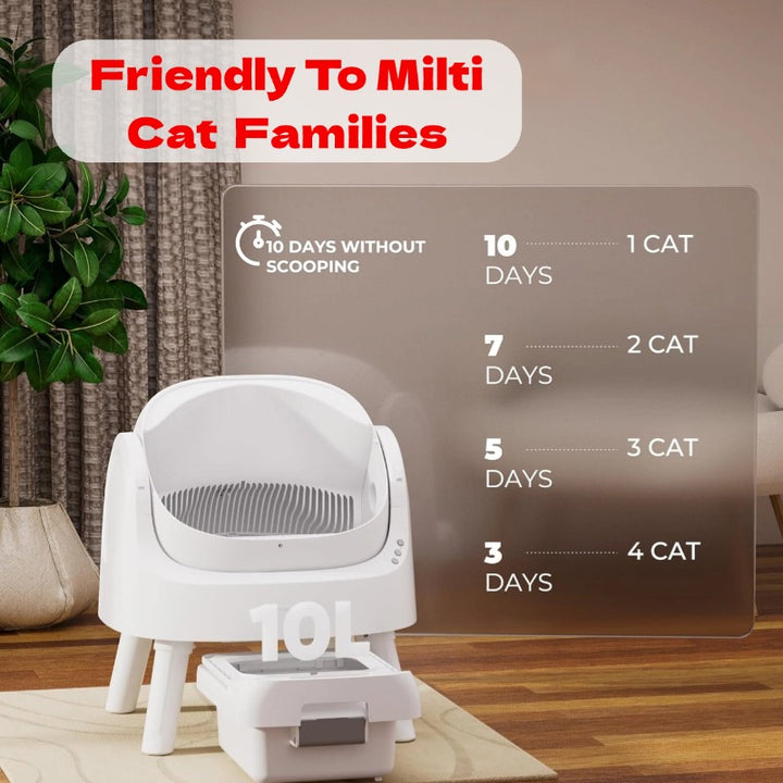 Auto-Cleaning Cat Litter Box for Multiple Cats | Open Top | White (Liners & Mat Included)