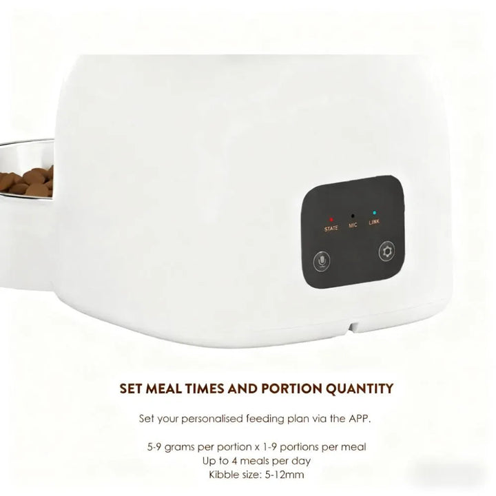 Intuitive app controls enable scheduled or on-demand feeding via iOS or Android smartphones