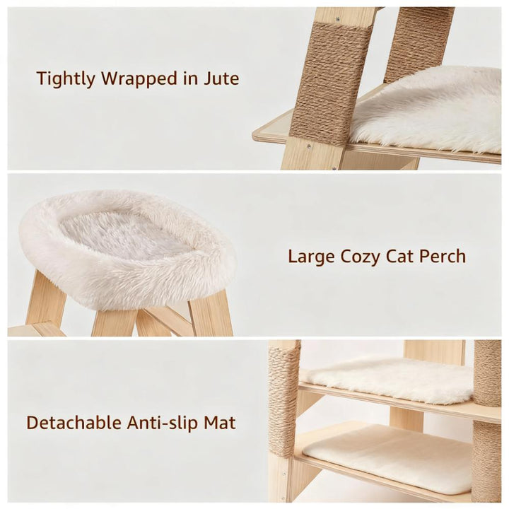 Wooden Cat Tree with Pyramid-shaped Design