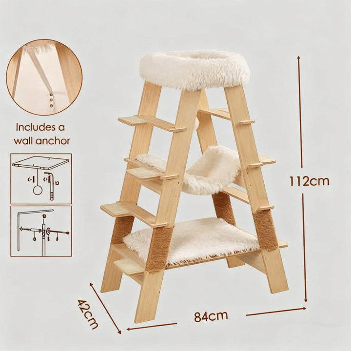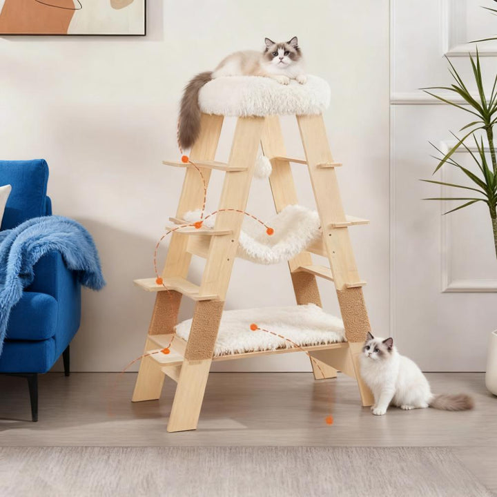 Scandinavian-inspired cat tree featuring a contemporary pyramid ladder design